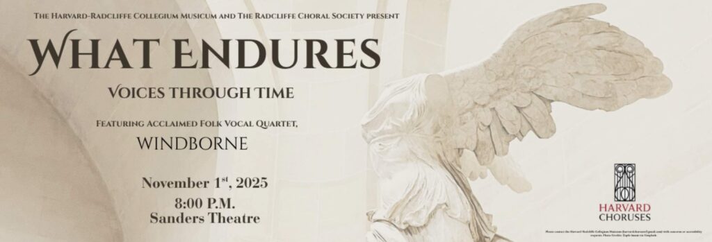 The Radcliffe Choral Society and Harvard-Radcliffe Collegium Musicum proudly present What Endures: Voices Through Time, a collaborative concert featuring Windborne, the acclaimed vocal quartet known for their fearless harmony and deep-rooted engagement with global folk traditions of resistance, resilience, and renewal. Together with guest artist Elitsa Stoyneva, an award-winning Bulgarian folk singer, the program draws inspiration from the Day of the National Awakeners—a Bulgarian holiday honoring those who preserve culture and awaken the spirit through music, education, and collective memory.